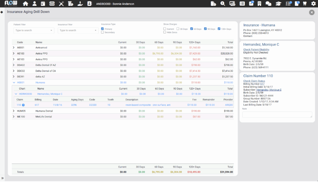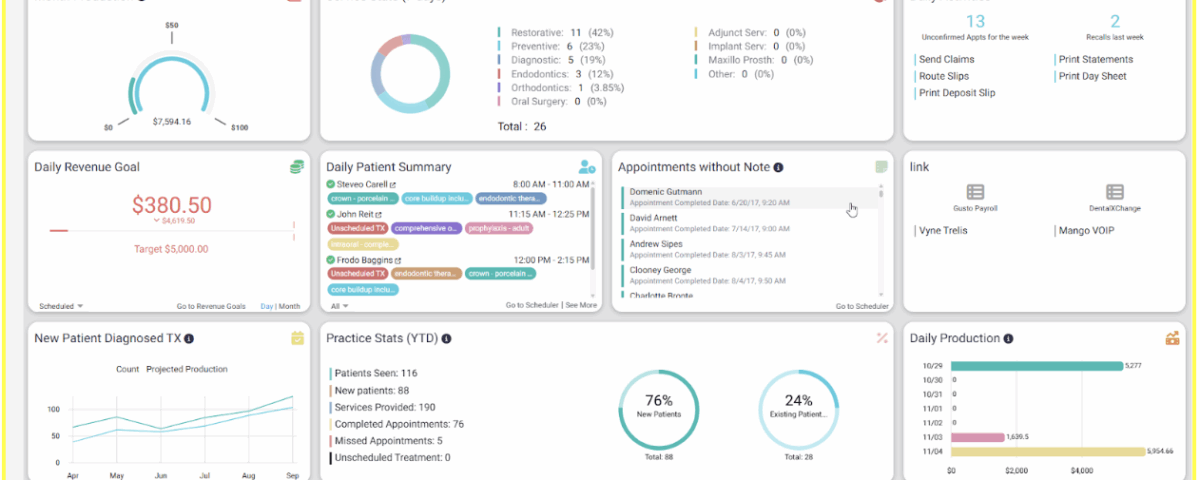 Instead of waiting for monthly statements, practices can now view production, collections, and outstanding balances in real time. This allows for quick course corrections, whether that’s addressing overdue claims or optimizing scheduling for higher-value procedures. -